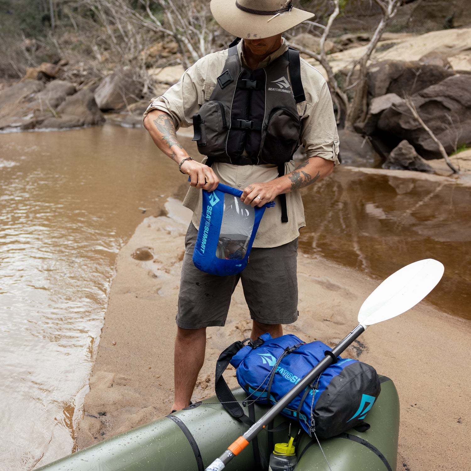 Lash to kayaks, bikes and 4WDs with confidence, or add a Dry Bag Sling (sold separately, sizes 5L – 35L only) for comfortable hands-free carrying. Big River Dry Bags are a durable and abrasion resistant storage option that uses a strong 420D nylon fabric. If your idea of outdoor recreation involves challenging water sports like kayaking, canoeing or rafting; or rugged land activities like bikepacking or motorcycle touring, they are the perfect storage bags to keep your gear dry. A white interior laminate affords greater visibility, and lash loops allow secure stacking or attachment to watercraft, motorcycles and other equipment. The hypalon non-wicking roll-top closure keeps water out, and the Field Repair Buckles can be replaced in seconds with just a Philips screwdriver. Big River Dry Bags were also designed with an oval base to save space when packing and prevent them from rolling away.