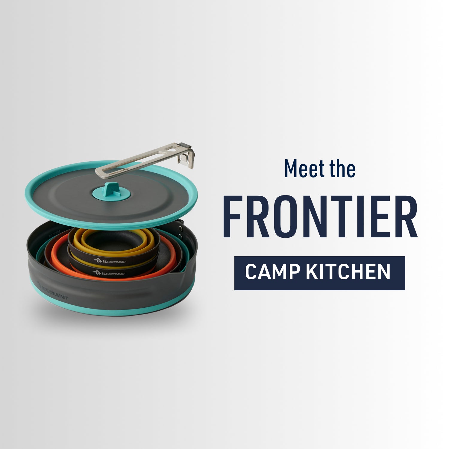Sea to Summit pioneered collapsible cookware and dinnerware - this set takes light & compact, functional camp kitchen gear to a new level. Made with EU food-grade silicone and a hard anodized aluminium base for rapid heat transfer, the 2.2L Frontier Collapsible Pot features the Click-Safe handle for secure handling and pouring. Rotate the handle to secure the lid and the tableware nested inside. The collapsible Frontier Bowls and Cups are as ergonomically functional as they are light. Glass-reinforced nylon rims make them easy to hold; silicone-rubber sidewalls have been engineered for perfect compactibility, and the curve between the sidewalls and base of the bowls harmonizes with Sea to Summit spoons and sporks. Ideal for those with large appetites and limited storage space.