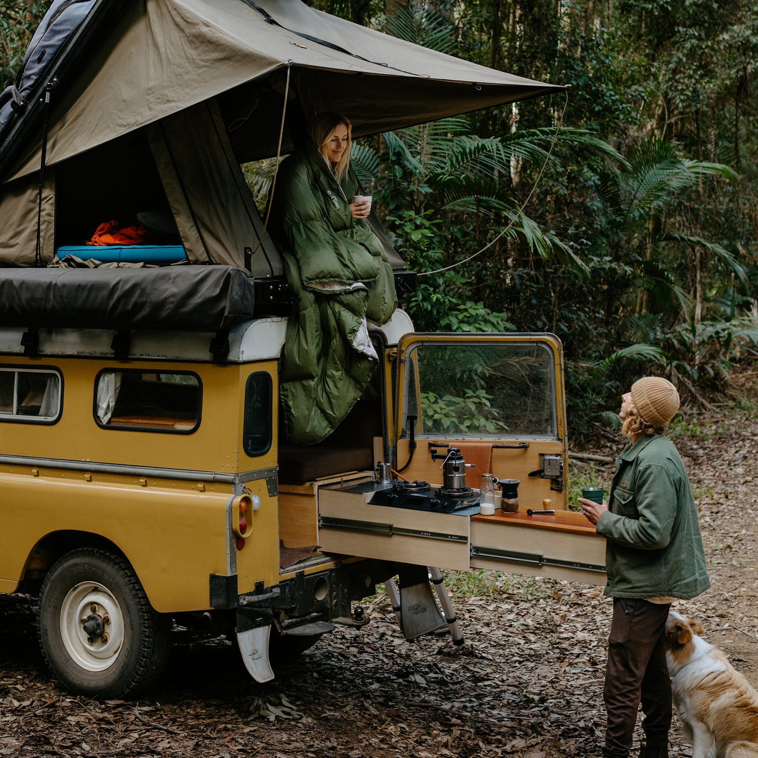 Share the warmth under a queen-sized Tanami Down comforter. 650+ fillpower, RDS-certified duck down with a non-PFAS Ultra-Dry Down treatment keeps you cozy, while the textured nylon liner fabric is as comfortable as it is practical, preventing the quilt from sliding off as you sleep. A drawcord system helps keep the quilt snugged to the base of your sleeping mat, and the QuiltLock system means you can secure the Tanami to a Sea to Summit sleeping bag to boost performance.